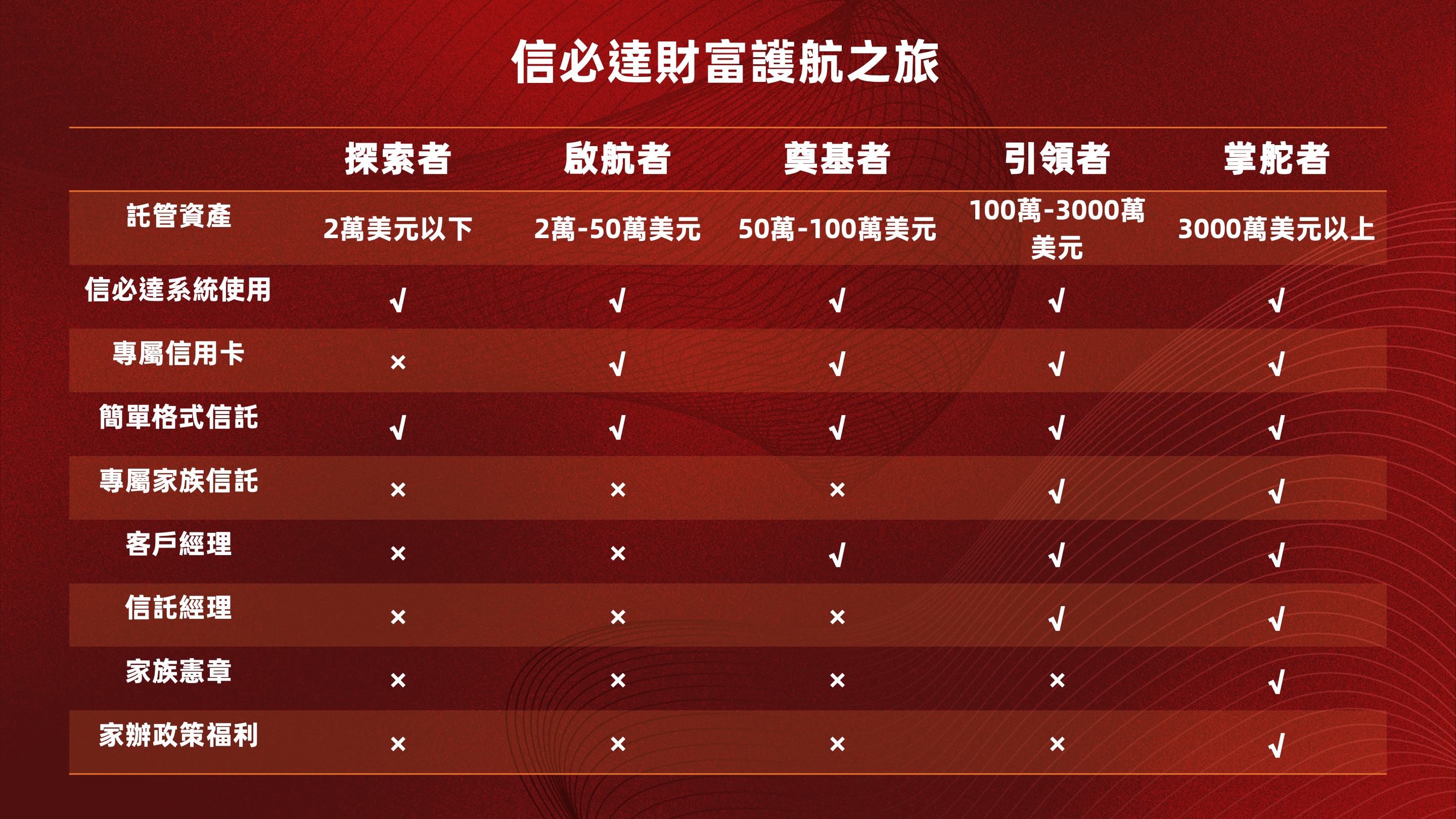 - 私人銀行級別專屬管家服務